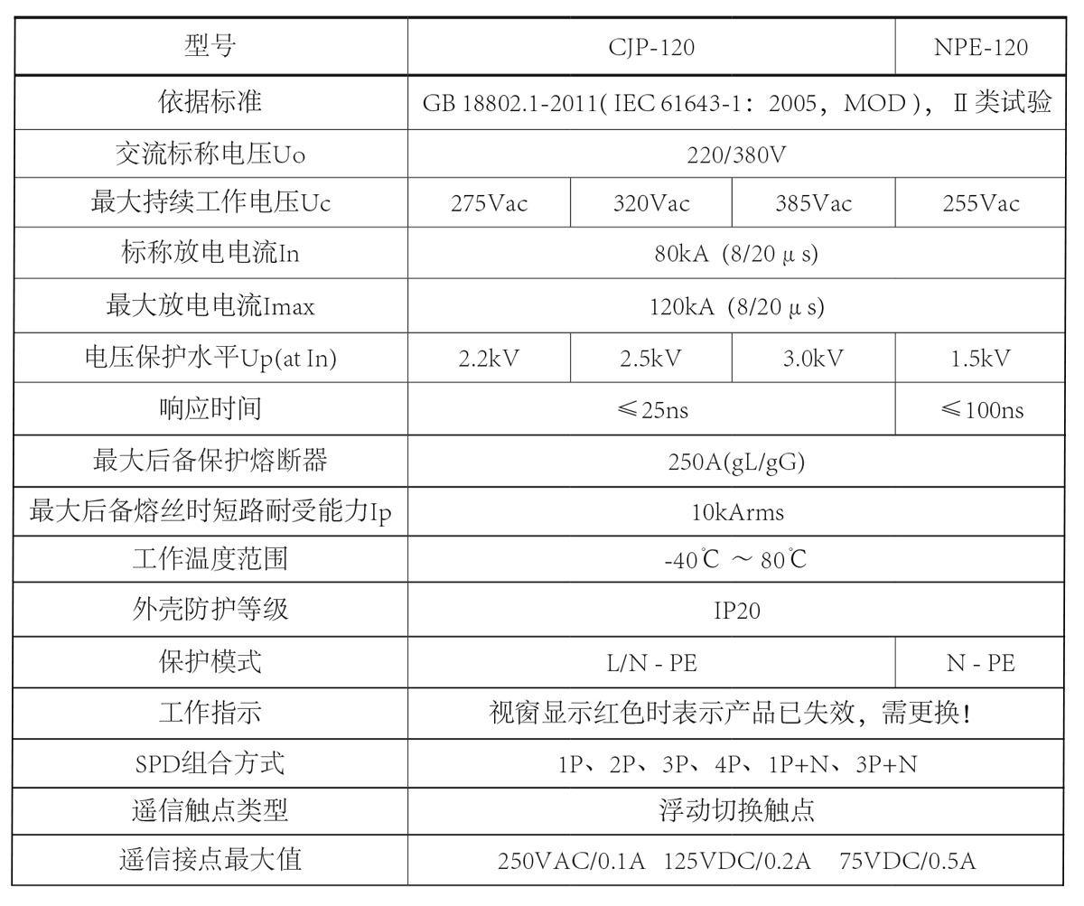 描述 我公司SPD的主要业务是OEM,我们的产品符合IEC61643.11-2011和GB18802.1-2011的要求,我们根据客户的要求提供个性化的服务。 Technical parameters of CJP-120