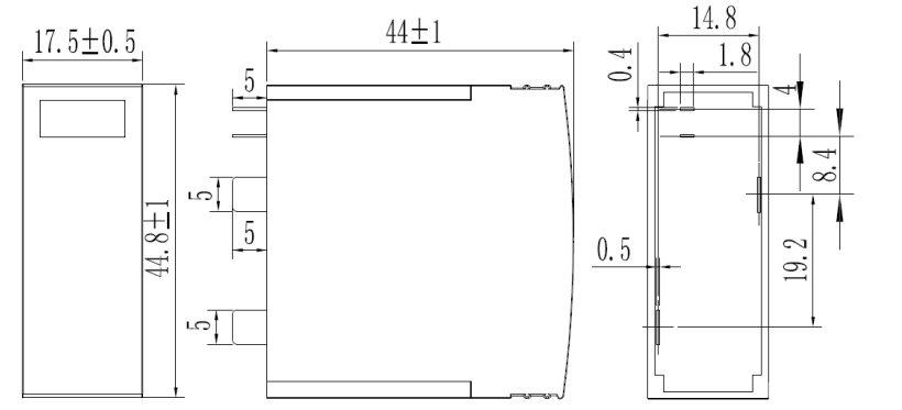 4.3.1 该防雷模块采用 PCB 焊接安装,PCB 板开孔如上图(PCB开孔尺寸图)所示。